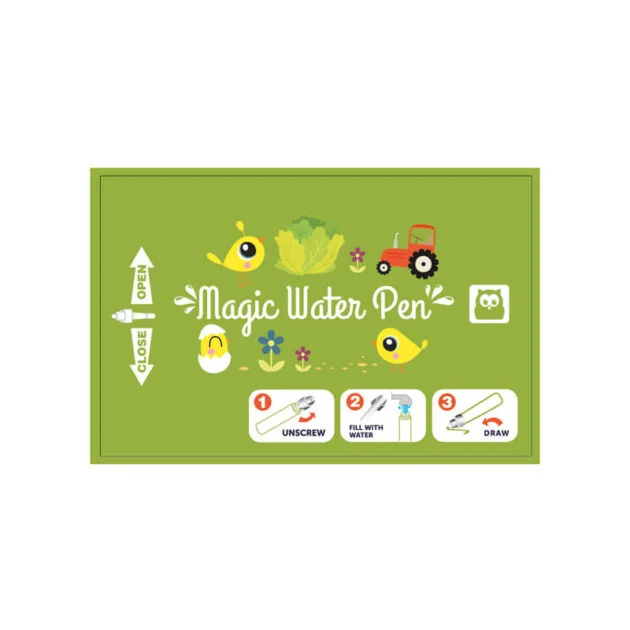 - Utilisation de l’eau : Les petits pourront peindre les images de ce livre avec un stylo à eau magique, pour découvrir petit à petit les petites images cachées en dessous. Les dessins disparaissent une fois sèchent, ce qui permet une utilisation répétée.