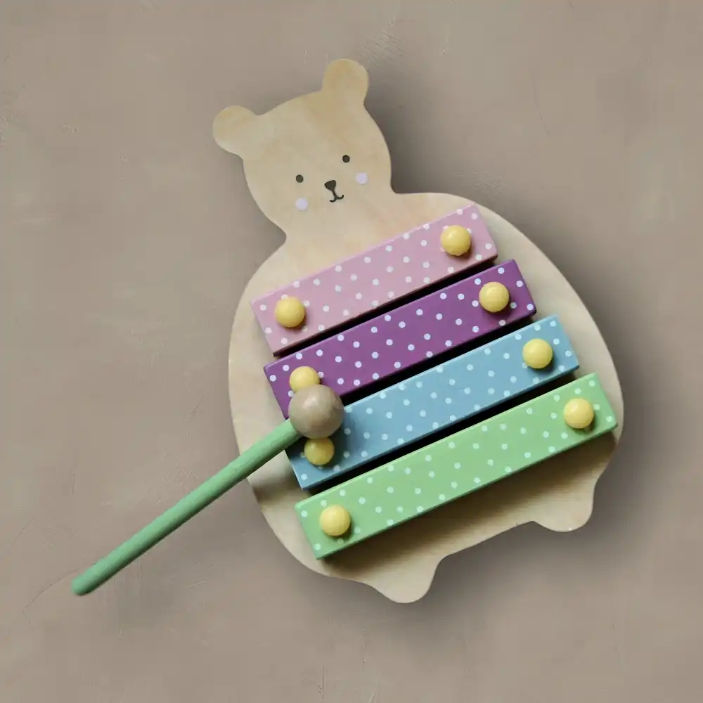Avec sa forme ergonomique et son design ludique, ce xylophone NOUNOURS est parfaitement adapté à bébé dès ses 18 mois. Avec son marteau facile à saisir, Bébé pourra découvrir le plaisir du son et de la manipulation.